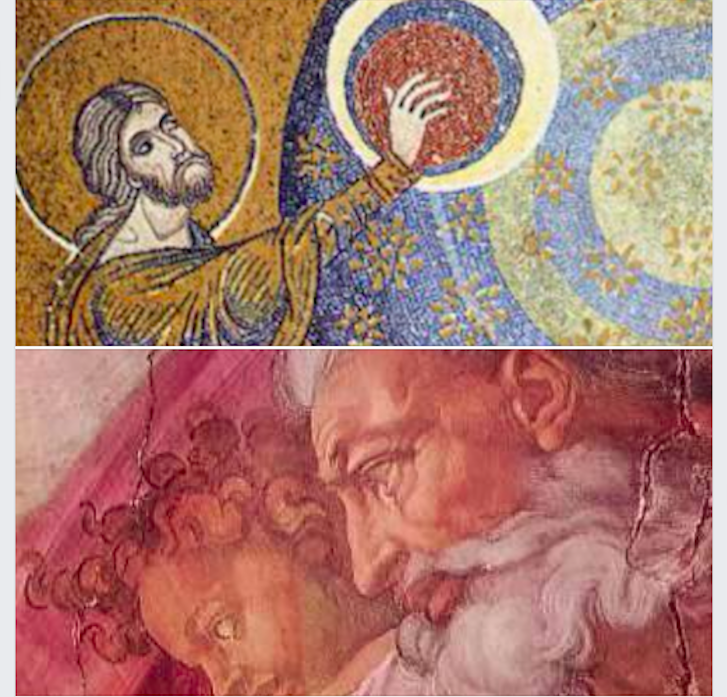 Tutti ricordano le immagini michelangiolesche della Cappella Sistina e tutti sanno che Dio Padre, nelle scene della creazione, è rappresentato come un austero e potente vegliardo con barba e capelli bianchi  (VEDI IMMAGINE).